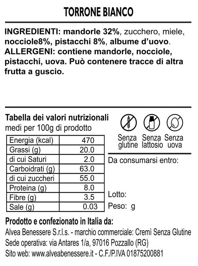 All'interno di questa Box trovi: Nuvolette di Nocciola 150g, Delizie d'Arancia 350g, Biscotti al Latte 260g, Cobaita 140g, Torrone Bianco 140g e Torrone di Mandorle 140g.